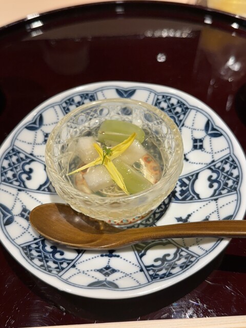 卵の色がオレンジ色で綺麗な上に松茸と蟹の餡がかかっています。お出汁に蟹と松茸の香りが幸せ〜。