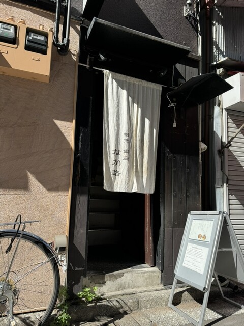 東銀座駅より徒歩2分のところに位置する銀座なか路さん。階段前に暖簾がかかっていて高貴な雰囲気を漂わせます。店内は2階にあり、席数は10席ほどしかありません。なので、大人数で行くにはおすすめできません。2人が限界かな〜という印象です。