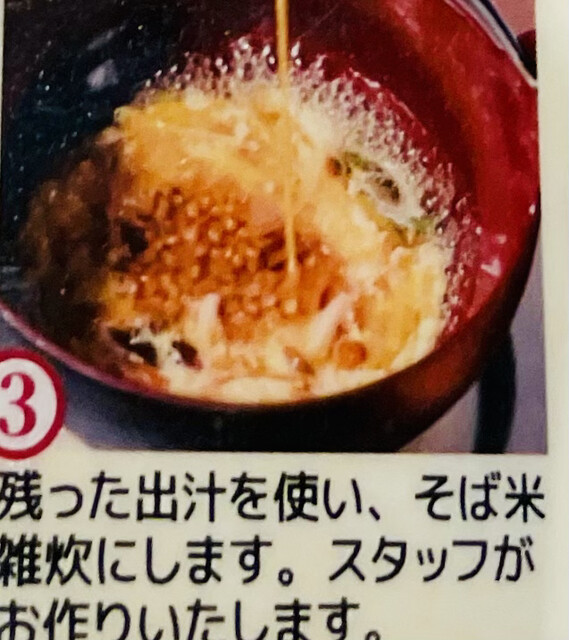 【食べ終わった出汁】を使い、「そば米の雑炊に」に