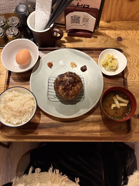 渋谷で前から気になっていたハンバーグ屋さんに行ってきました。ランチタイムは価格もお手頃で、2000円以内でしっかり満足できる内容なのが嬉しいポイントです。席に着くと、テーブルにはたくさんの調味料が用意されていて、自分好みの味付けにアレンジしながら食べられるのがとても楽しかったです。ハンバーグは切った瞬間に肉汁があふれ出し、とてもジューシーで食べ応え抜群でした。お肉の旨みがしっかり感じられて、ご飯がどんどん進みます。さらに卵も付いてくるので、最後は残ったご飯で卵かけご飯にして締めるのがおすすめです。最初から最後まで楽しめる、満足度の高いランチでした。