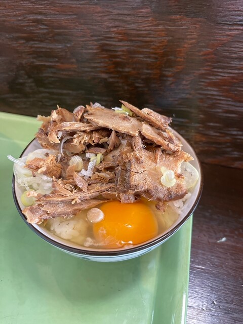 冷たい肉そば、大盛り、肉増し、ライス注文。