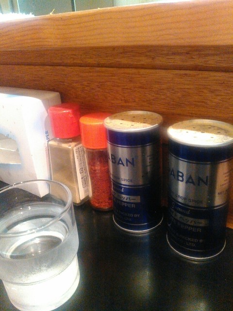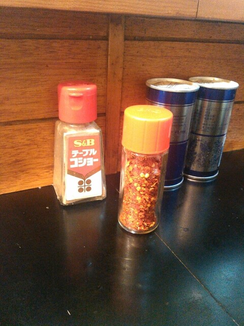 黄色い細縮れ麺はしっかりしたコシがあり、スープの持ち上げもバッチリです。スープは出汁100%ということで、醤油ダレは入っていません。しかし、いろんな食材でしっかり出汁をとっているために、濃厚で複雑な味わいとなり、これだけでも十分な美味しさです。実際に100をオーダーする人のほとんどが、そのまま食べているような気がします。特に今日のスープは、いろんな旨みが凝縮した最高な美味しさだと思いました。ところがしょっぱいもの好きの自分は、最初の味見を済ませたら、卓上の醤油ダレを投入して、下品をオーダーしたくらいにしていただきます。量的にはれんげに2杯程度で自分好みのベストなしょっぱさ。自分自身で味の微調整をしながら、美味しく食べ進めます。たっぷりの悪魔肉や味玉も美味しくいただき、最後はスープまで飲み干して完食です。