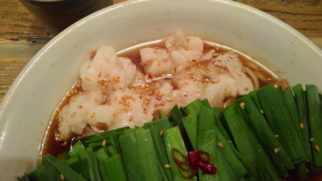 中細ストレート麺は通常のにぼらぁと同じように感じます。スープは少しだけ濃いめでしょうか?スッキリした煮干の風味が口いっぱいに広がります。ニラはしゃきしゃき。あまり火を通していないようなので、いったんスープに沈めると、もつ鍋風の食感になります。プリっプリのモツはラーメンの具として合うように、小さめにカットされていて食べ易く、スープや麺との相性バッチリです。
