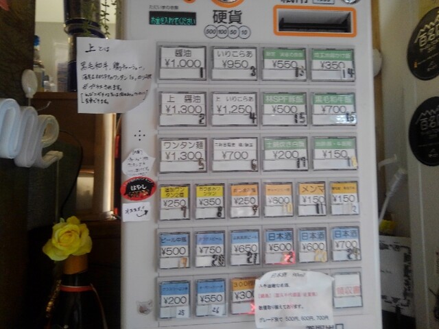 順番に食券を購入して席に着きますが、まずは券売機で限定のチェック。すると以前、Twitterで見たことのあるもつにらを発見。迷わずボタンを押しました。