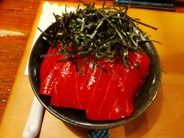 あらかた食べ尽くしたところで、魚飯にかかります。本鮪なんてめったに食べませんが、鮪の味を濃く感じます。たっぷりの刻み海苔も良いアクセントで美味しくいただき、最後はスープまで飲み干して完食です。