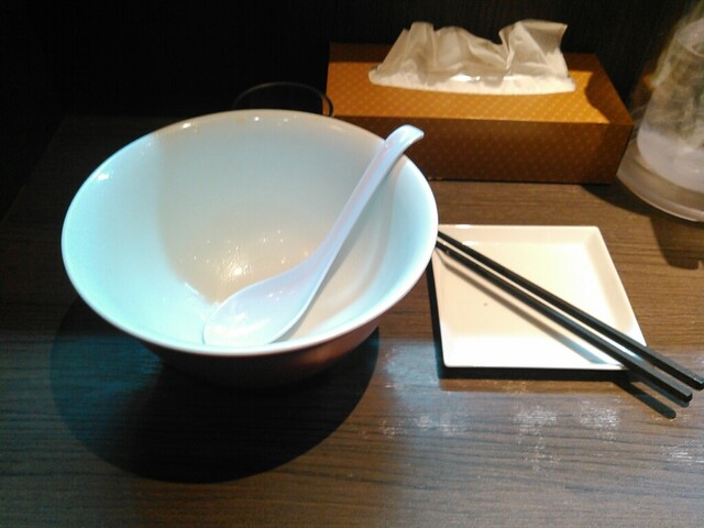 驚くほど空いています。土曜日の12時に、お客さんはテーブル席のみ。カウンターには誰もいないので、一番奥に座って、食券を渡します。