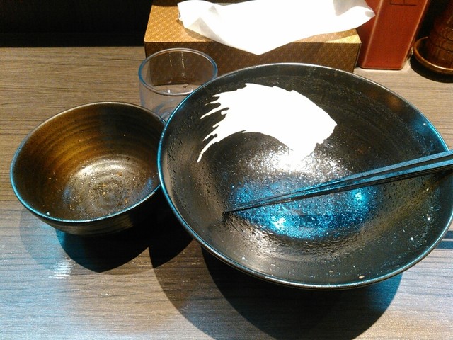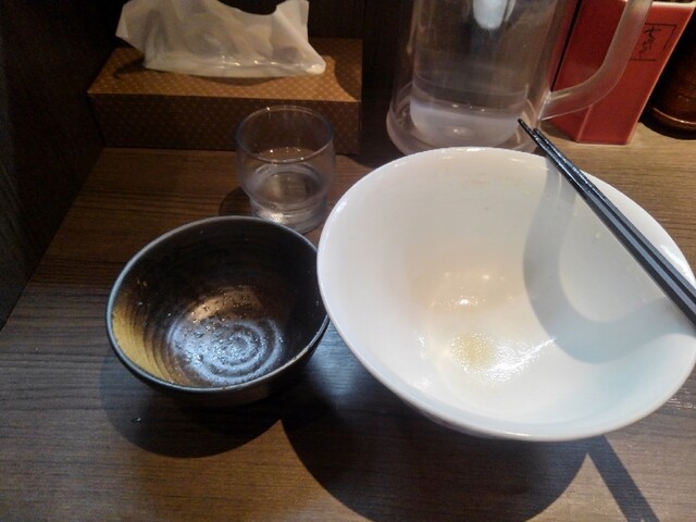 きざみチャーシューごはんは、タレに頼らない味です。チャーシューの脂の甘みと胡椒の刺激、それをスープで流し込めば至福の味となりました。最後はスープまで飲み干して完食です。