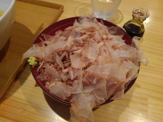器いっぱいの削り節。香りが半端ありません。醤油をかけすぎないように注意しながらいただきます。食べている最中にもいい香りが鼻から抜けていきます。もちろんご飯も甘みを感じる美味しさで、本枯節の味をさらに引き立ててくれています。とはいえ単なるおかか飯。これで550円は高いと思う人もいるとは思いますが、自分はそれだけの価値のある味だと考えます。