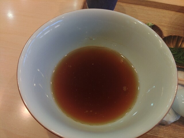スープ割りは根布出汁を自分で加えます。思ったより残らなかったので、しょっぱかったのですが、すべて飲み干して完食しました。