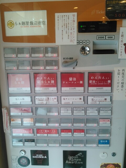 早すぎたかな?と思っていたのに、自分の前にも何人かのお客さんはいたようでした。店外に出ている券売機で、先に食券を購入しておきます。