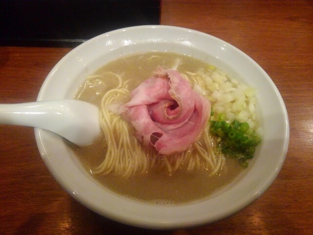 しばらく待って提供された一杯は、いつもの煮干しや甲殻類の出汁とは違った甘い鶏を感じる香りがしました。チャーシューも花のように盛り付けてありキレイです。