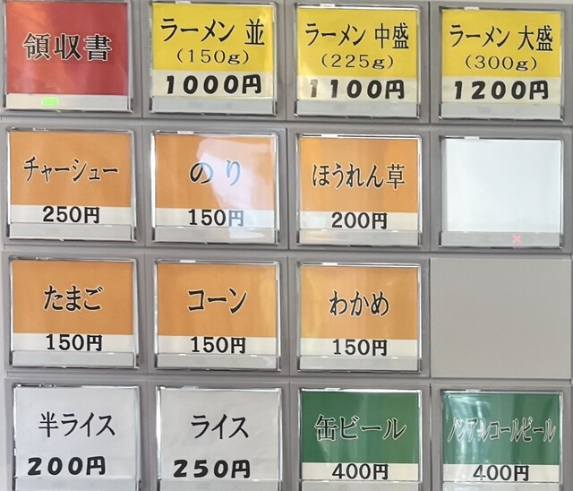 ラーメン中¥1100 菠薐草¥200 ライス¥250