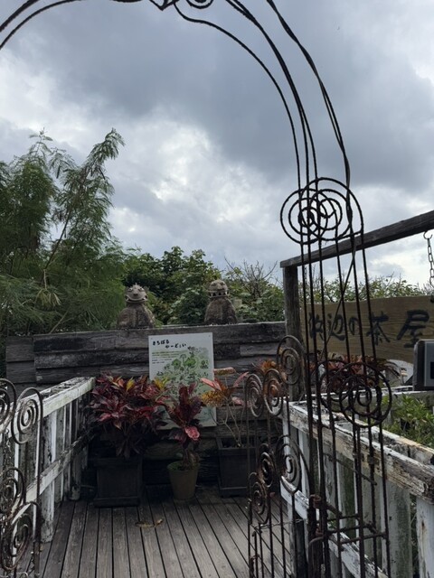 座席もたくさんあって、室内(窓から絶景海が見える)が満席で、曇っていたが我々は外のテラス席へ。(猫ちゃんがテラス席にいたので猫ちゃん目当てでもある)