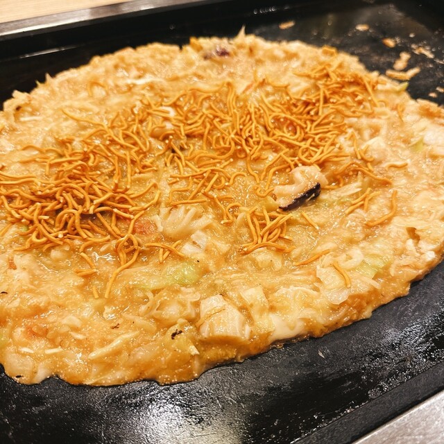 贅沢もんじゃみたいな定番の明太子系に盛り盛りの海鮮が乗ってるものを頂きましたが安定の美味しさ...