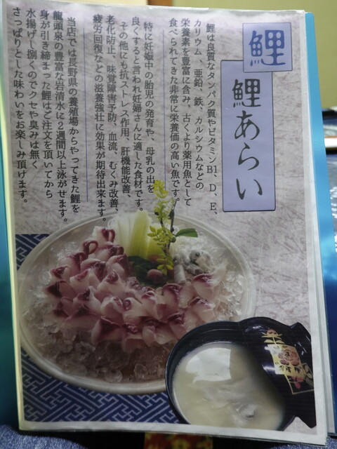 慶應桜満開の龍頭泉荘へ子供と妹, 3人で訪問.。二人とも初めての訪問となります.。鯉の洗いにあるピンク色の小さな刺身はてっきり心臓,ハツと思っていたら鯉の口の奥にある歯のような器官ということでした.。昔,実家の池の鯉が夜中にゴリゴリ音をさせるので大きなタニシを口の奥にある歯で砕いているのだと聴きましたが驚きです.。甘酢あんかけ, 唐揚げにした鯉が美味しかった,まだ肌寒いので鯉こくのミルキーで熱いお汁は何よりです.。