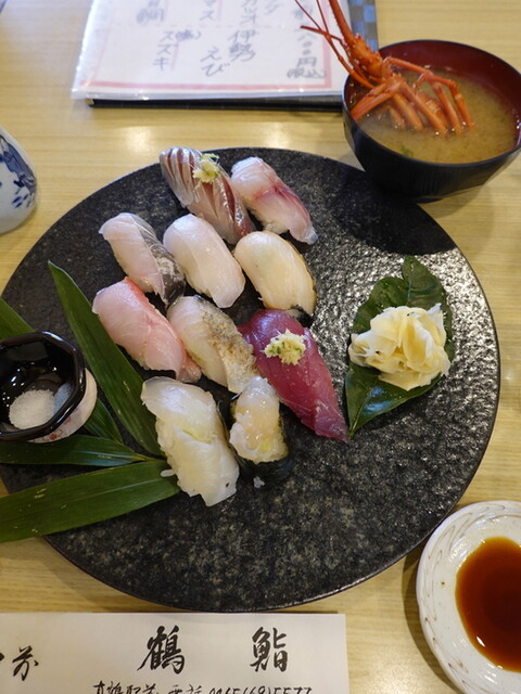 真鶴、岩漁港でダイビングして、しょうとく丸宿泊、中川一政美術館と周り、最後はお寿司食べて帰ろうと考え、お土産の鯵サブレをかった、洋菓子店タカヤナイさんから鶴鮨か、福鮨かと教えてもらいました。店舗改装したばかりの清々しい店内がちょっと落ち着かないけど、仕入れ、鮮度第一という心意気を感じました。現金オンリーなので食べ過ぎ注意。真鶴は地酒が少なく、高いのが難点。地元産握りセットは10巻3800円、鮮度、量とも十分。都内の寿司屋と比べて鮨飯が少々大きく、ネタも大きく、如何にも漁師町の花形店という感じです。暑かったのでアペリティフに牡蠣食べた。
