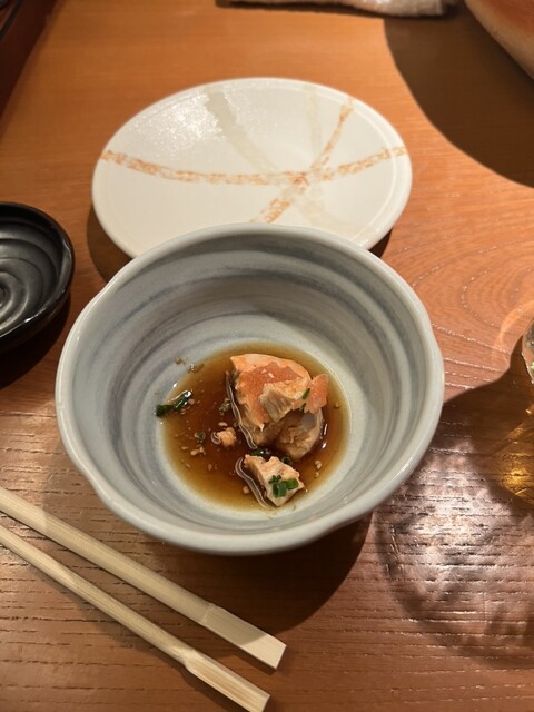 突き出しのあん肝はあまりに美味しそうで、おもわず箸つけてしまい、写真タイミング遅れてすいません!