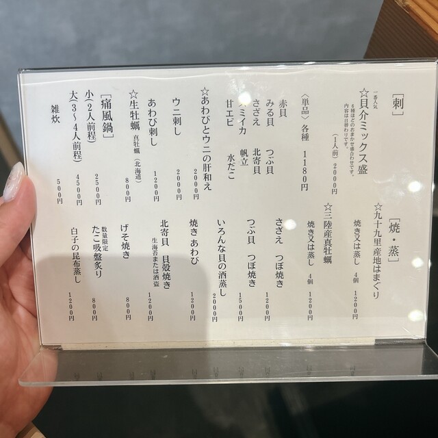 案の定満席でしたが、2時間後なら空いているとのことで、もう貝を食べたい気持ちが抑えきれず「待ちます」とウェイティング。空き次第連絡をいただくことに。