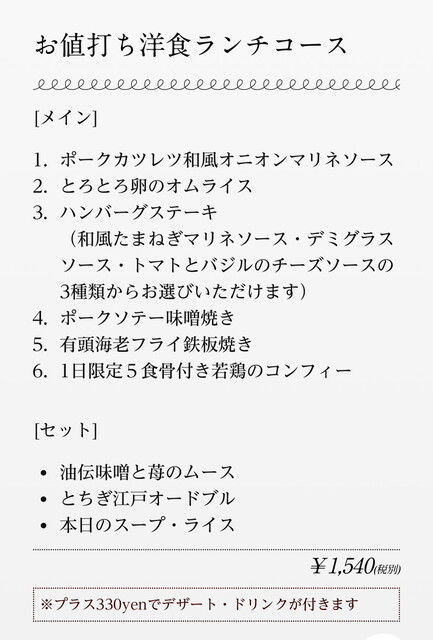 HPよりメニュー抜粋② 宮崎駿さんはポークソテー味噌焼きを食されたようです