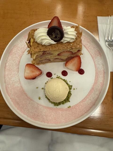 この時期は、苺とサクサクパイとカスタードクリームに惹かれて、ナポレオンパイを頼みがち。