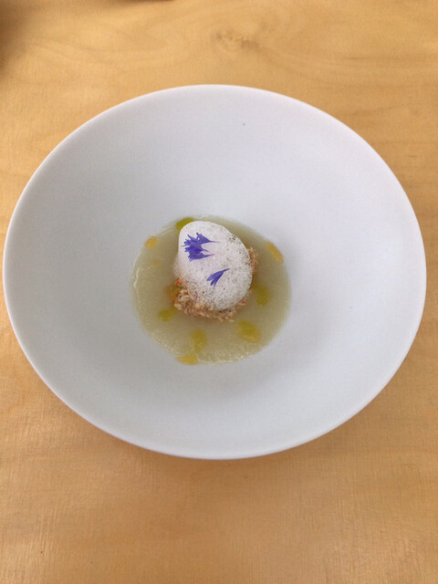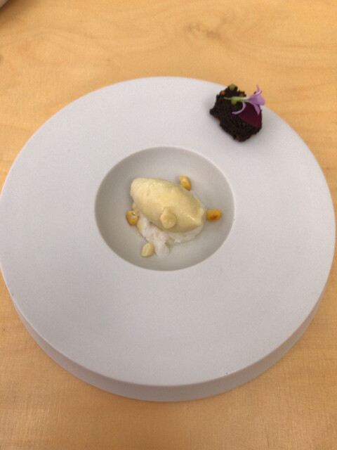 どの皿も素晴らしかったのですが、土を模してつくったオカラの上に、採れたての野菜を植え、収穫体験をしながら食べる野菜は、ここならでは。燻製にした卵の黄身を使ったソースと野菜の相性は抜群でした。