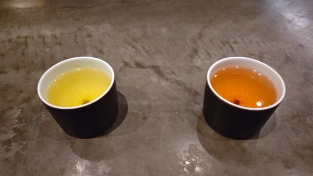 お席はこの字カウンターですが、お隣の客とはほどよい距離感がありますので、それほど気にはなりません。