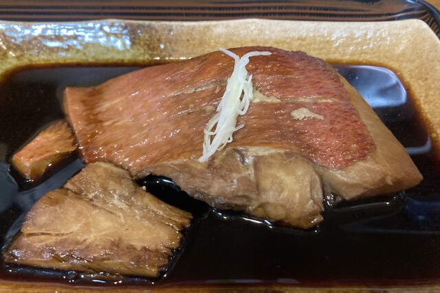 丁寧に煮付けたキンメは旨み抜群。煮汁を白めしにかけて丼で食したいほど。