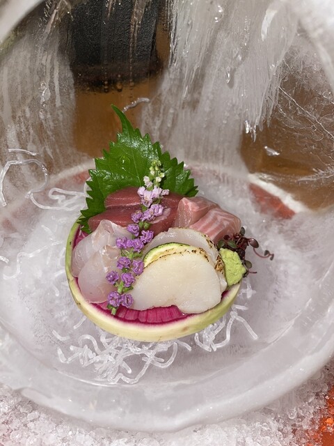 刺身のレベルは変わらないが、こんな装飾はありえるかというサプライズ