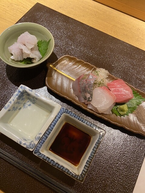・お造里(発酵焼き(備長炭)ハモ/長崎本鮪/しまあじ/宮崎真鯛