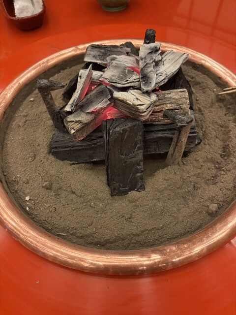 寿き焼きは砂糖とたまり醤油と少量の出汁という感じです。コースは2枚づつで、野菜もありますが量的には前菜を含めても少し足りないくらいですね。そのため網焼き追加しましたが、結果的には成功でした。網焼きはヒレなのであっさりと食べられました。寿き焼きは炭で鉄鍋を熱してでしたし、網焼きは炭で直火です。美味しいはずです。