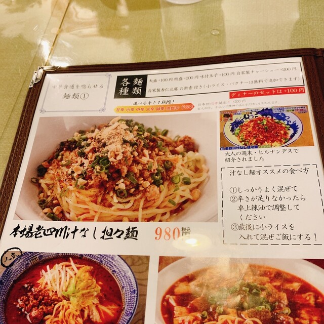 今日は、「汁無し担々麺(税込980円)甘辛+無料ライス」を注文(^^)!!