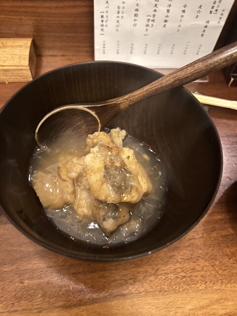 こちらの麺は釜竹さんから直送。釜竹の麺で創作系を楽しめるのはこちらだけとのことで、なすと桜エビのおうどんをいただきました。
