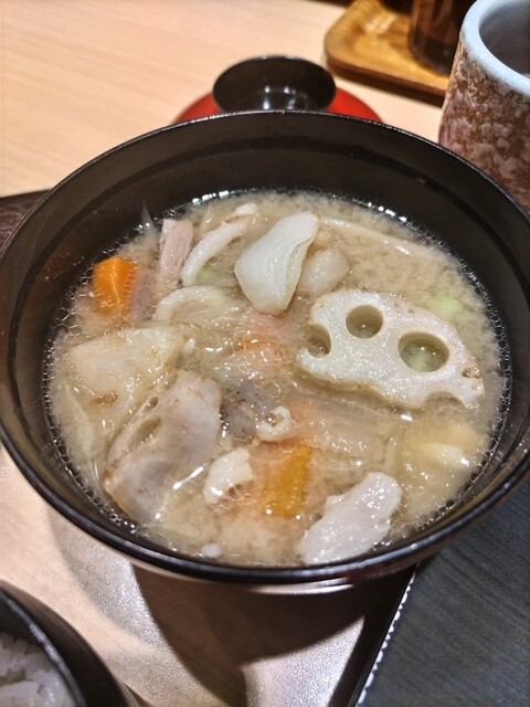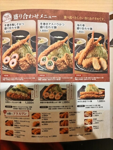 メニューは事前のリサーチで厚切りロースとんかつ200Gに豚汁を追加で決定です。エビとかクリームコロッケなども追加出来るみたいですが、ここはノーマルで決定です。