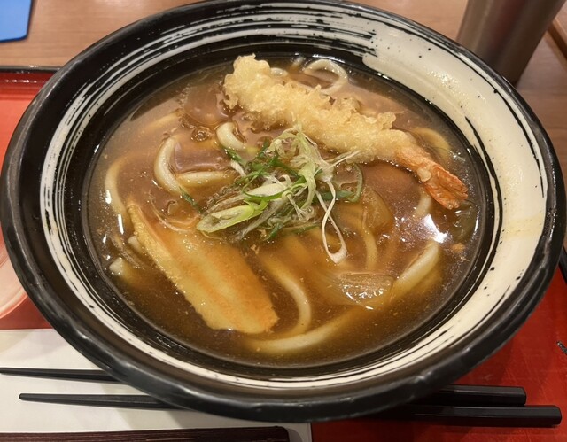 暑かったけど、どうしても海老天カレーうどんが食べてみたくて初来店。お昼で賑わっていたけどすぐ案内されて席でQRコードから注文。お出汁の利いた汁とカレー、モチモチのうどんが最高でした。夏バテ防止に是非!