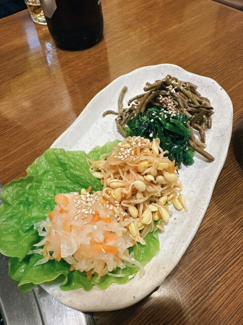 とにかく何を食べても美味しい。ナムル、キムチ、ユッケ、和牛上タン、ハラミ、赤身カルビ、豚バラカルビ、レバー焼き、ホルモンに豚シャブと2人でメニューにローラー作戦をかけるが、どれもはずれナシ、というか当たり。中でも、ホルモンと豚シャブは抜群。ホルモンはその柔らかさがある程度しっかり焼いても維持され、かつくちゃくちゃ噛みまくる必要もなく食べられる上に、タレが絶妙な甘さ。豚シャブはオリジナルの調味料でタレに馴染んだ舌に鮮烈なインパクトをもたらしてくれる。これはよく考えられ改良を重ねた結果なんだろうな。