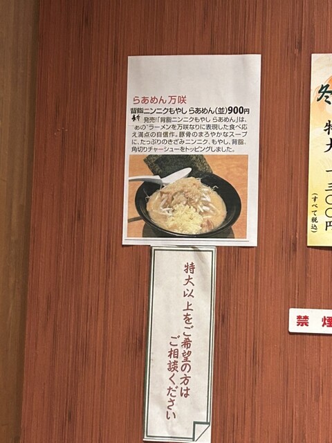 R6年1月から、豚骨醤油、豚骨塩のレギュラーメニューに背脂にんにくもやしラーメンが仲間入り!