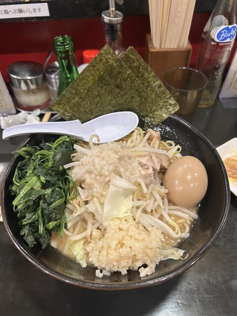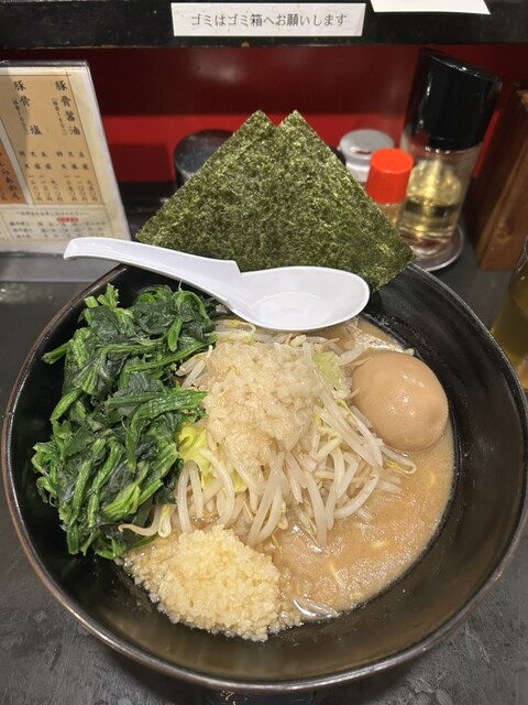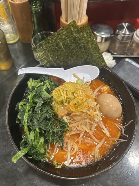豚骨辛味噌 特大 TPほうれん草 味玉