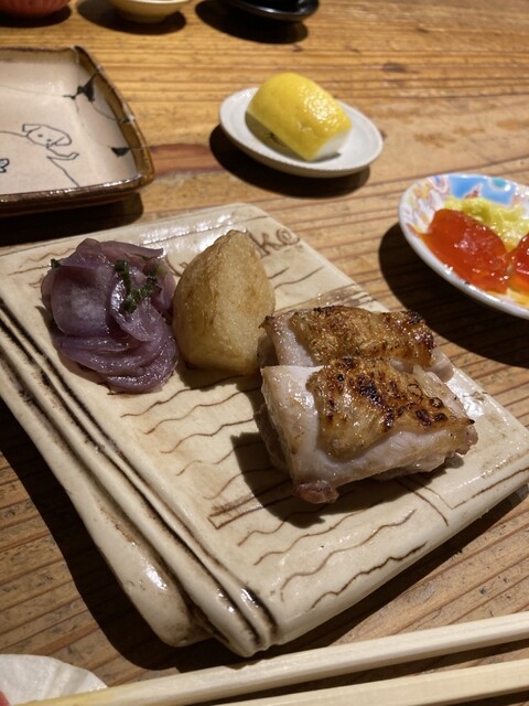 見た目のインパクト凄いですね。どうやって黄身を肉にくっつけているのですか?と質問すると卵管と卵巣をそのまま焼いているだけとの事。勉強になります m(_ _)m