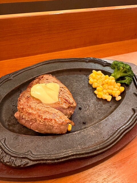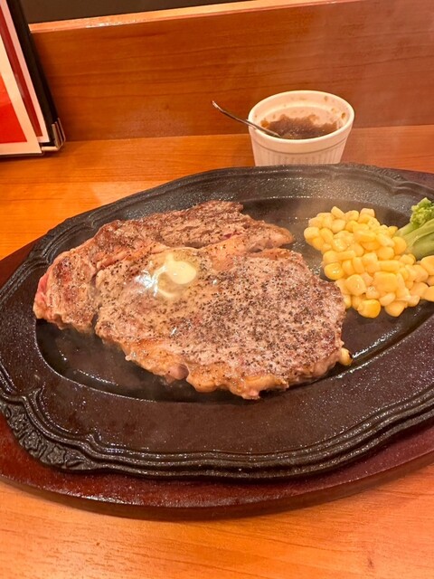 よくあるタイプの鉄板で仕上げてねスタイルの焼き加減で、ソースは玉ねぎベースの和風、ジューシーでダイナミックな肉にピッタリの味付け。