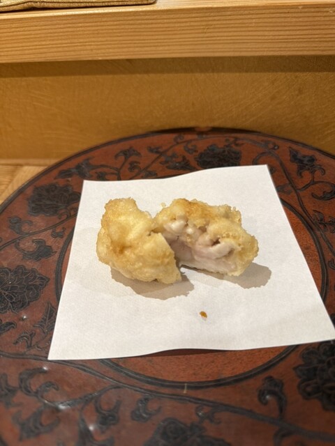 別メニューでとんでもないサイズのトヤマエビの天ぷら、トヤマエビの天ぷら自体が初めてで、中はレア、衣はパリッと、素晴らしいものでした。