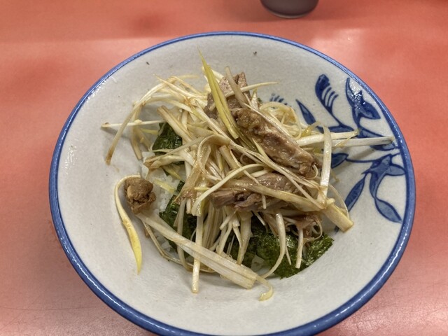 そしてネギ丼。これまた個人的キングオブサイドメニューです。シャキシャキの白髪ネギ、ノリ、チャーシュー、魔法のタレがかかった飯。食感、味のバランスが絶妙でメチャクチャ美味い!そしてこれがラーメンとの相性が抜群!セットで優勝です。無限に食えますラーメンとセットで食べることをおすすめ!
