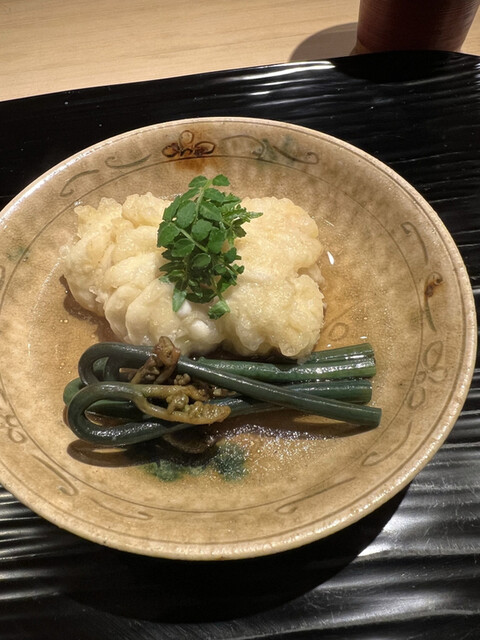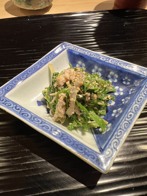 隣に座られてた男性が蟹味噌や白子やヌタや海鼠がキツかったみたいでほぼほぼ全品残されてて、途中まで女性が助けて食べてたんですが、それも限界だったみたいで、大将が気づかれて、野菜ものはそのままで、最後の白子はお客様に希望を聞き鮑に変えられてました。