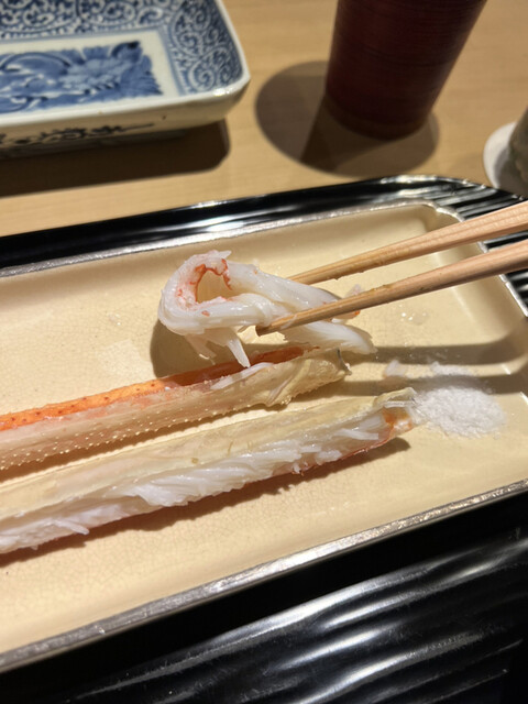 蟹コースなので蟹は当然美味しいのですが、最初の名物のカラスミ揚げ出し餅やフグの厚切り白子掛けなんかは本当に絶品でした。
