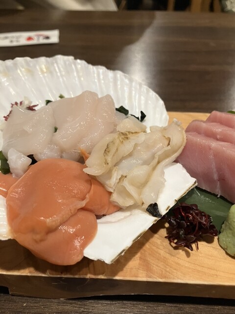 帆立のヒモがこんなに甘くて歯応えも良く美味しいなんて初めて知りました。私の中ではヒモは少し生臭い物と言う印象でしたが、もはやヒモだけでも良いかも。新鮮で美味しい物を食べた事がなかったんですね。キモ?は貝柱をもっと濃厚にしたようなお味、コレも初体験です。
