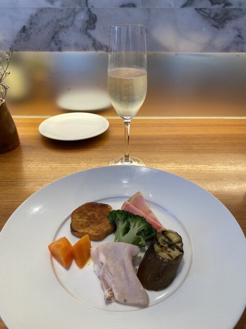 前菜の盛り合わせ。全部美味しいけど、特に茄子を火で炙った香りと茄子のあの独特のジューシーさ。茄子の中まではそんなに火が通り過ぎてない抜群のお料理で大好き。