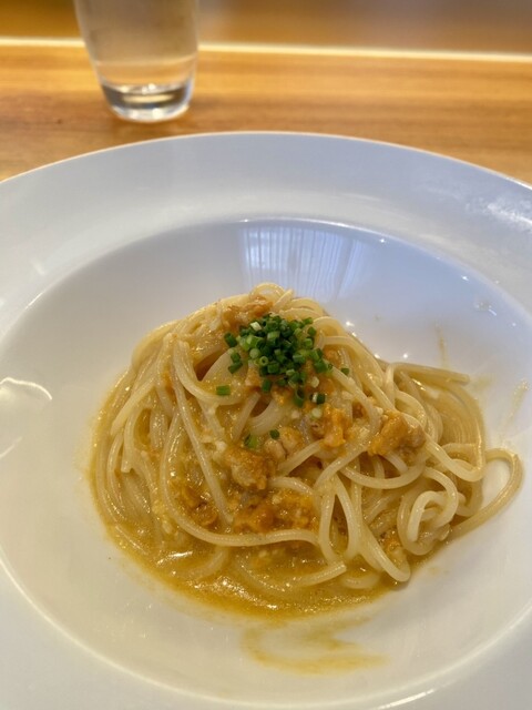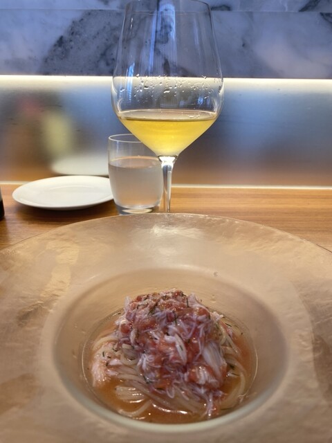 もちろんフルーツトマトとズワイガニのカッペリーニも♪いつ行っても肩肘張らない優しい雰囲気、空間の中で、とても美味しい料理を提供してくれる素晴らしいお店。今回の白のセレクトは素晴らしかった。器の縁に散りばめられたカラスミを中に寄せて牡蠣の旨みと交わらせて食べたリングイネ。そしてバリックのきいた太い白ワイン。ワインの温度が上がって香りが増した時との相性が抜群でマジ美味かったです。ご馳走さまでした。