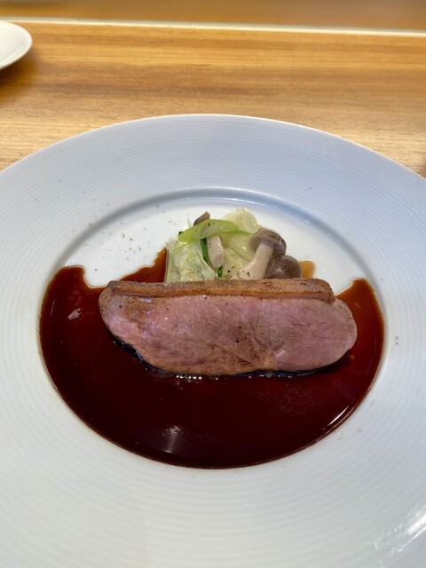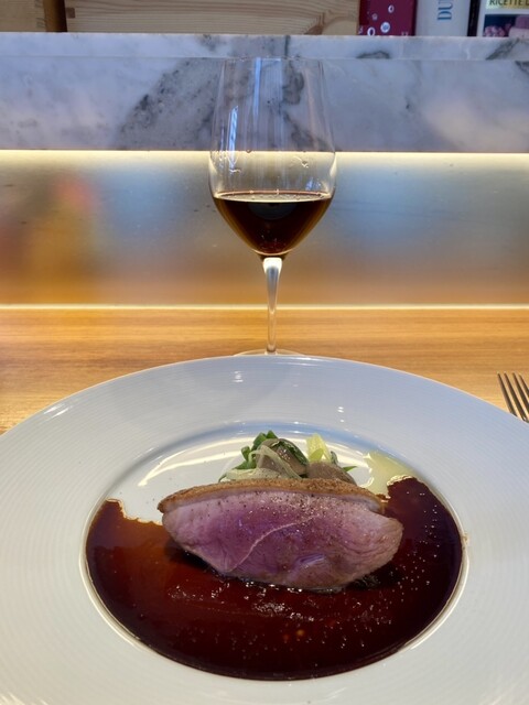 鴨のローストバルサミコソース。皮目がしっかりカリカリになるまで焼かれてて。肉のジューシーさと皮目の香ばしさが相まった最高のお味です。