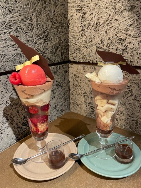 20時は過ぎていて他のお店ではもうオーダー出来ない時間でした。それでもパフェが食べたくなり、探したところこちらのお店はやっていました。店内はまだまだ沢山の人が入っており、オシャレな空間です。連れがチョコレートで私がベリーのパフェを注文。ベリーの方が高カカオ使用。