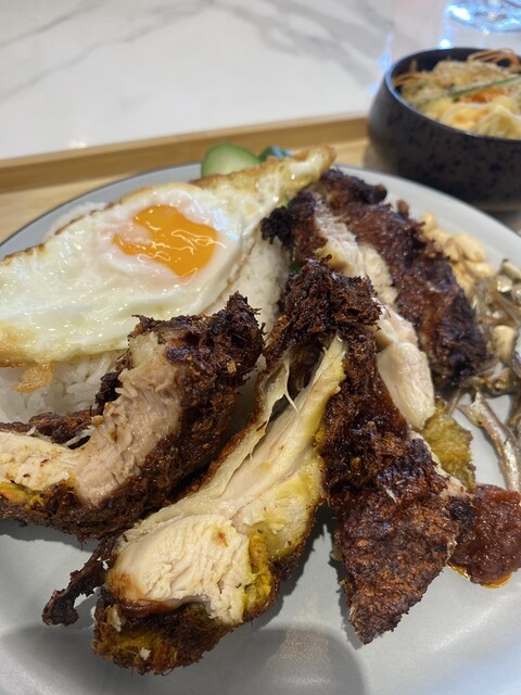 ココナッツミルクで炊いたライスにレモングラスとカランガルの唐揚げ、