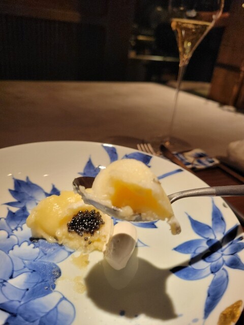 チャプチェ 雲丹 韓国料理名だが、味はイタリアンに近い。旨味の強い雲丹の濃厚なソースにまた、カラスミが合う